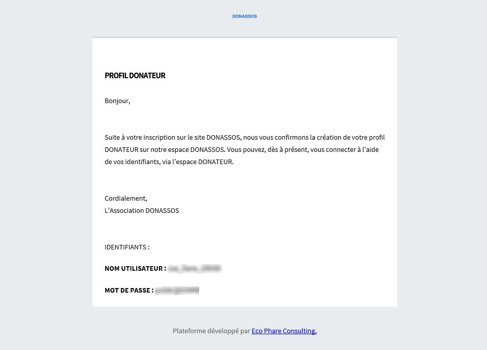 Les modalités sont simples. Pour pouvoir s’inscrire, en tant que « donateur », sur la plateforme DONASSOS, il suffit de faire un don en faveur de l’une des associations répertoriées sur le site. Un compte sera automatiquement créé et un mail confirmant la création de votre profil « Donateur » et contenant vos identifiants de connexion sera envoyé par l’équipe de DONASSOS.