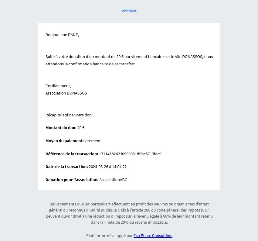 * Le paiement est en attente car l’équipe de DONASSOS doit recevoir une confirmation bancaire avant toute validation définitive d’un don.